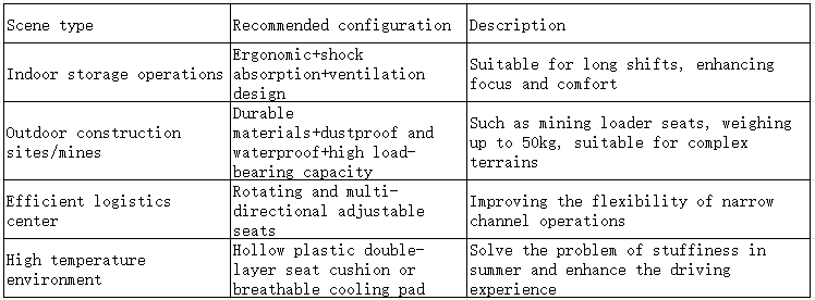 Due to the use of rigid suspension in forklifts, the seats themselves bear the main shock absorption function. Mid to high end products are often equipped with spring suspension devices or pneumatic shock absorption systems, which can adjust damping according to the driver’s weight and effectively alleviate ground bumps and impacts