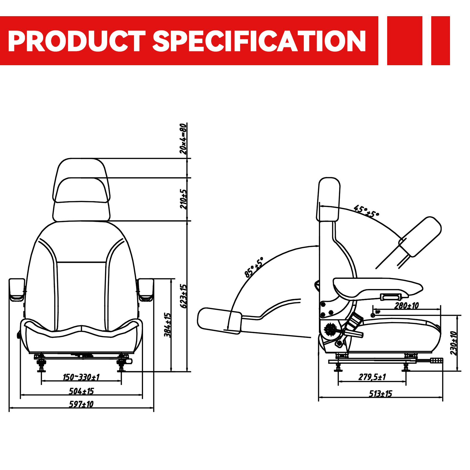 Black Construction Machinery Seat Adjustable Mechanical Suspension Crane Operator Excavator Seat